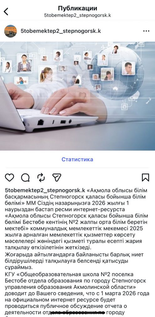 Коммунальное государственное учреждение «Общеобразовательная школа № 2 поселка Бестобе отдела образования по городу Степногорск управления образования Акмолинской области»